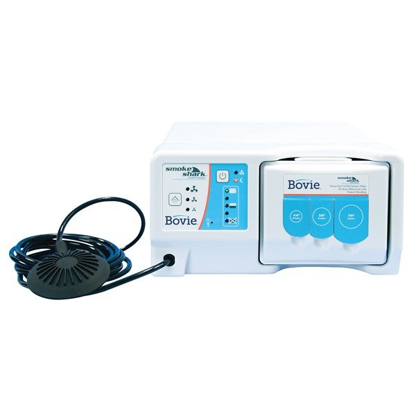The Bovie Smoke Shark II Smoke Evacuator is available in Factory New or Certified Refurbished conditions. The Factory New includes a long life 35-hour Filter (#SF35), Pneumatic Footswitch (#FSSEP), User’s Guide, and Power Cord. The Certified Refurbished includes a power cord with the unit, and has been professionally inspected and tested to work like new by qualified engineers. Sold per Each
