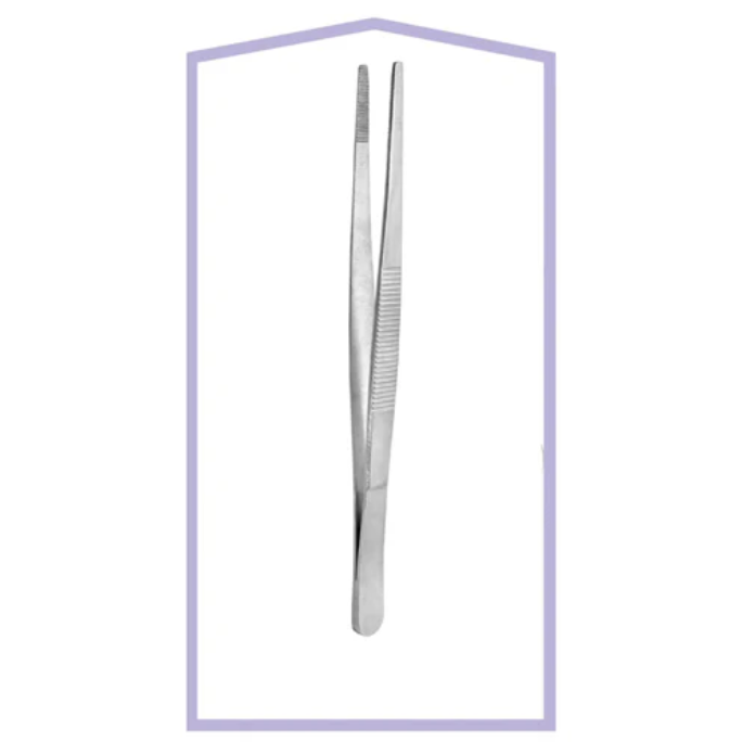 Dressing forceps are used when dressing wounds. They hold gauze and other dressings. They may also be used during wound debridement to remove infected or necrotic tissue or debris from the wound.