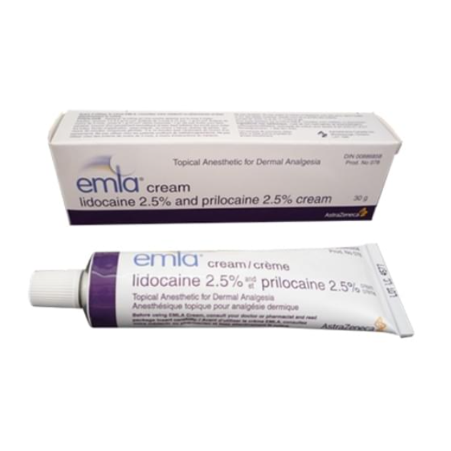 EMLA Cream (lidocaine 2.5% and prilocaine 2.5%) is a topical anesthetic which causes a temporary loss of feeling or numbness of the skin.
