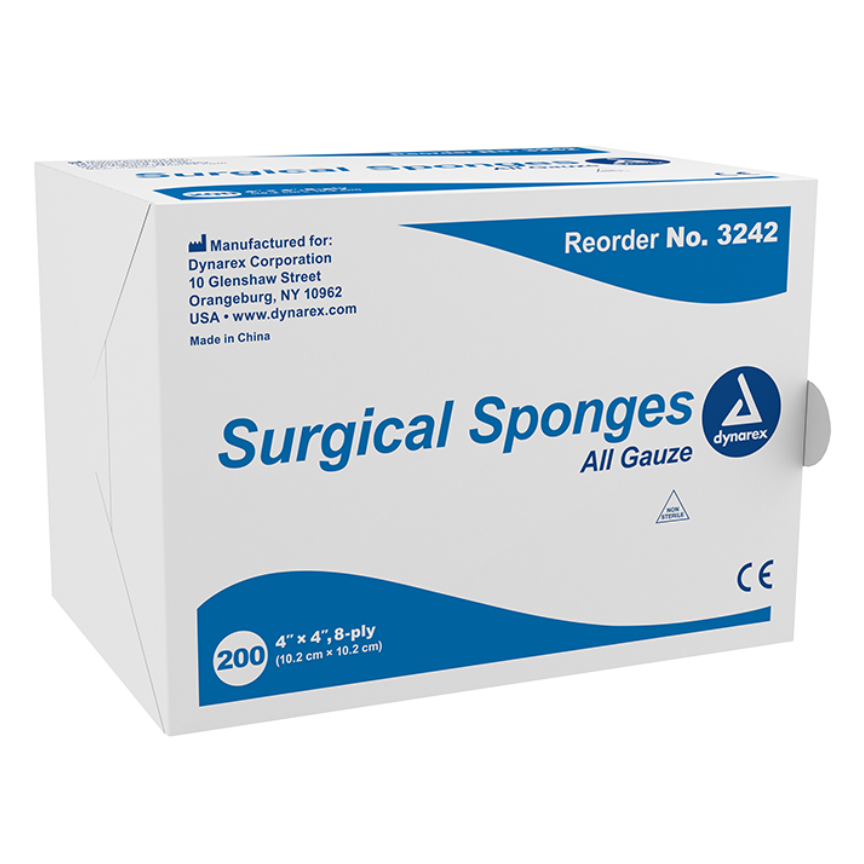 Dynarex Gauze Sponges & Pads are high-quality dressings made with 100% cotton materials for use in cleaning, dressing, and packing wounds.