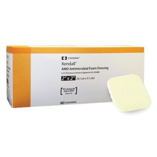 4 × 8 in, Hydrophilic Polyurethane Foam, Polyhexamethylene Biguanide (PHMB) Impregnated Ingredients, Square, Sterile, 0.005 Strength, Kendall™ Impregnated Foam Dressing (10 per Box, 5 Boxes per Case)