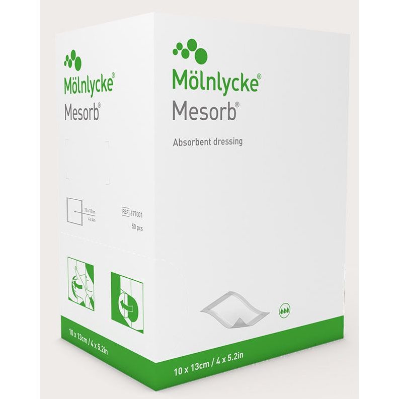 Mesorb® is a soft highly absorbent dressing that can retain large amounts of exudate. The unique fluid repellent barrier reduces frequency of dressing changes and prevents soiling of clothing and bed linen.
