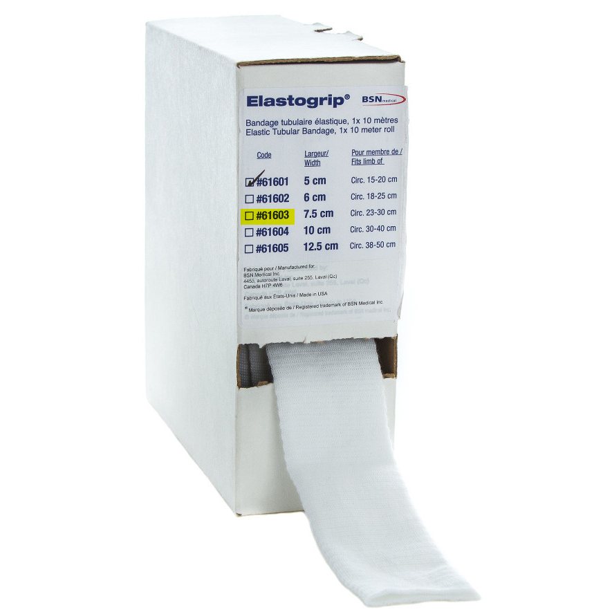 Elastogrip® is a polyester and spandex tubular elastic compression bandage which provides consistent and even compression that requires no taping.
