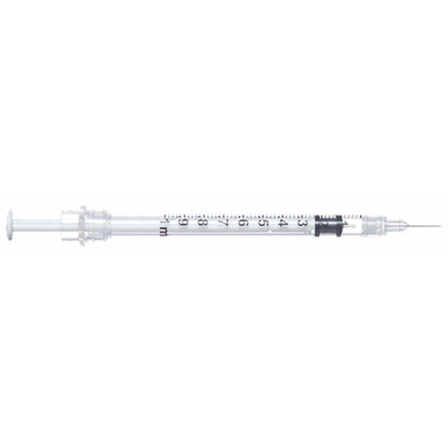 The BD Allergist Tray 27G x 1/2” Regular Bevel is a 1ml syringe with a permanently attached needle.