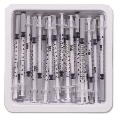 BD™ 1cc Allergy Syringe with permanently attached needle, 27G x 1/2", Tray