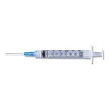 22 G Gauge, 1-1/2 in Needle Length, 0.1 cc Graduation, 3 cc Capacity, Clear, Luer Lock Tip Type, With Needle Needle Type, Ultra-thin Wall type, Tamper Evident Peel Packs Packaging Type, Disposable, Smooth Plunger Action Action Type, Double-Bevel Needle Point Style, Sterile, Hypodermic Syringes with Needle (100 per Box, 6 Boxes per Case)
