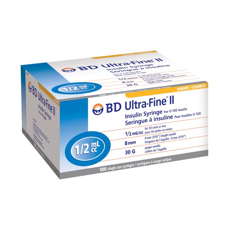The Ultra-Fine™ II Insulin Syringe combines precision dosing with patient comfort. Featuring a 1/2mL capacity and bold, easy-to-read scale markings, this syringe is ideal for moderate insulin doses.