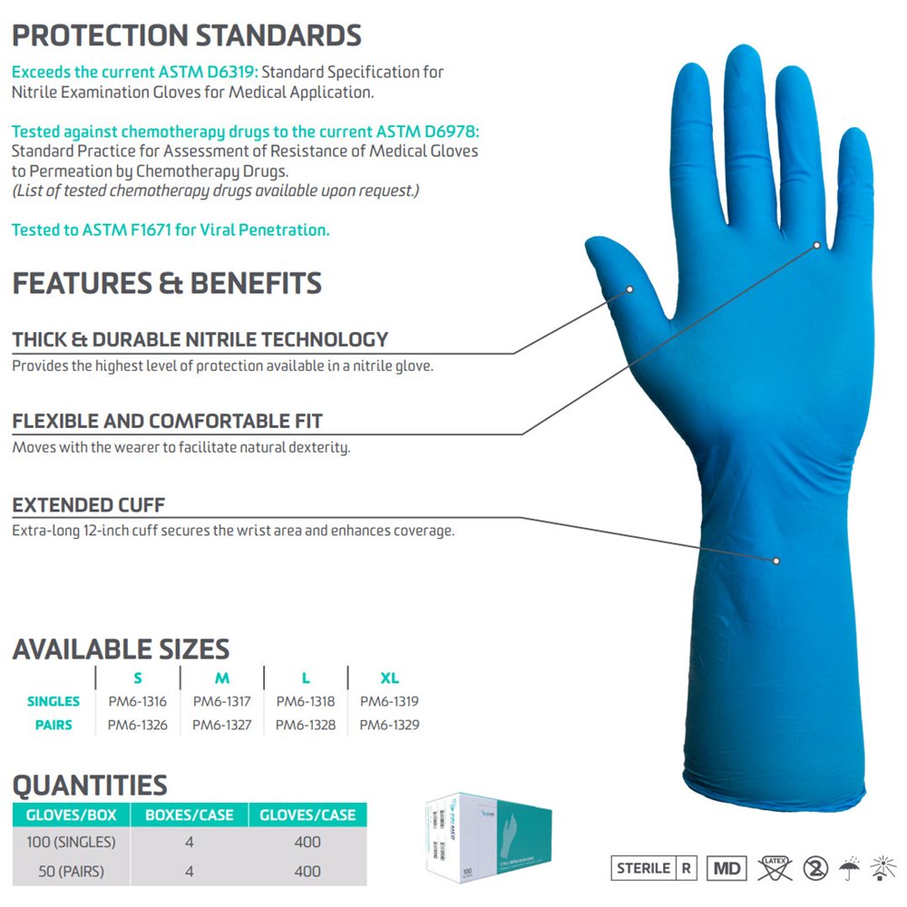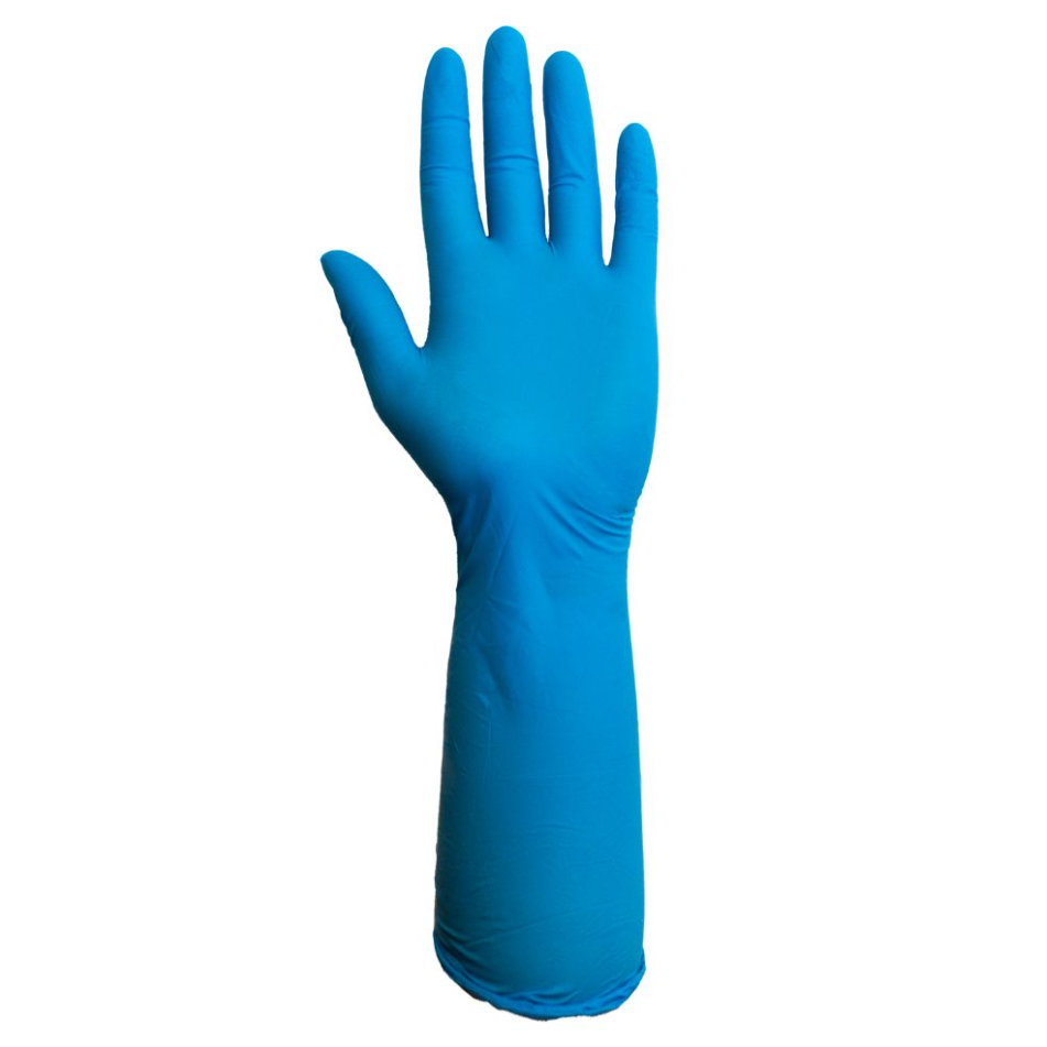 The Secure Nitrile exam glove provides reliable protection in situations that pose a high risk of contact with potential contaminants. Durable nitrile with a 12-inch cuff enhances coverage and micro-texturing of the entire glove improves grip and dexterity.