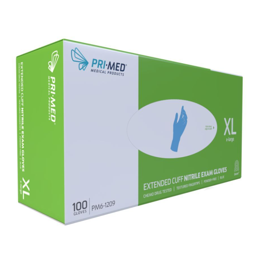PRIMED® Secure™ Extended Cuff Nitrile Exam Gloves, Extra Large