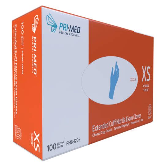 PRIMED® Secure™ Extended Cuff Nitrile Exam Gloves, Extra Small