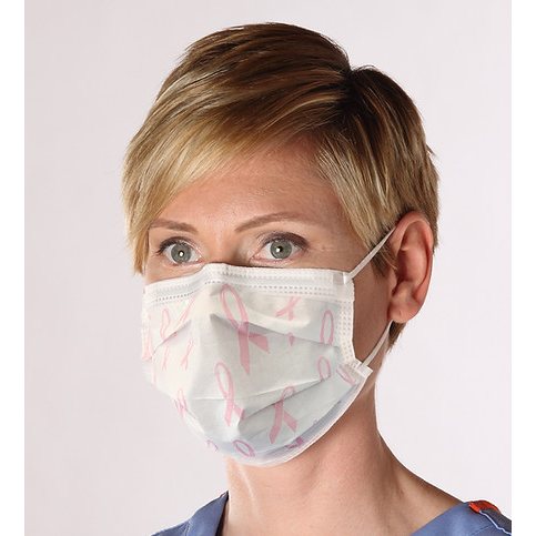 Pink Ribbon Ear Loop Mask White for Breast Cancer Awareness (50 Masks per Box, 10 Boxes per Case)