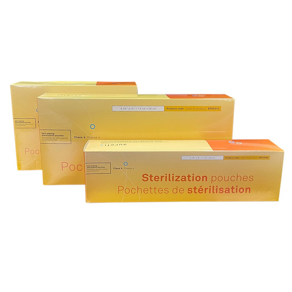 The Aurelia Self-Sealing Sterilization Pouches provides a dependable barrier against contamination and makes instrument processing simple. Designed for steam or chemical-vapor sterilization, each pouch maintains sterility until the moment of use“”perfect for dental, medical, tattoo, and laboratory settings. (200 per Box, 10 Boxes per Case)