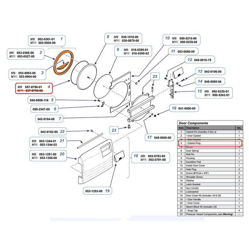 Silicone Rubber, Mounts Above Door Gasket Mounting, For Ritter M9, M11D Autoclaves and Sterilizers Application, Dam Gasket Kit Sold per Each
