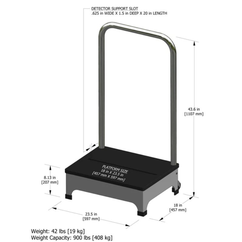 Weight Bearing 1 Step Platform is designed to accommodate digital DR Panels, CR and Analog Cassettes. This product is designed for easy mobility plus stability while allowing for easy weight bearing imaging on the foot, ankle, and knee.