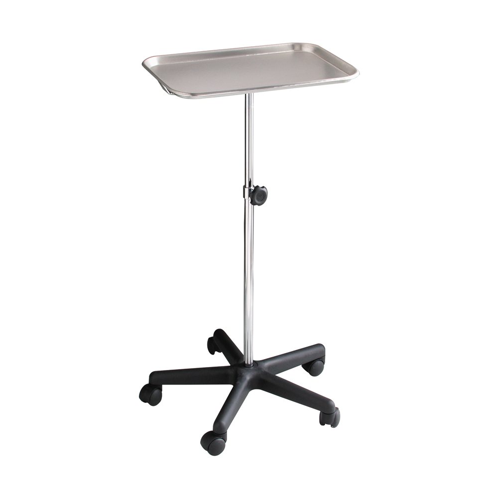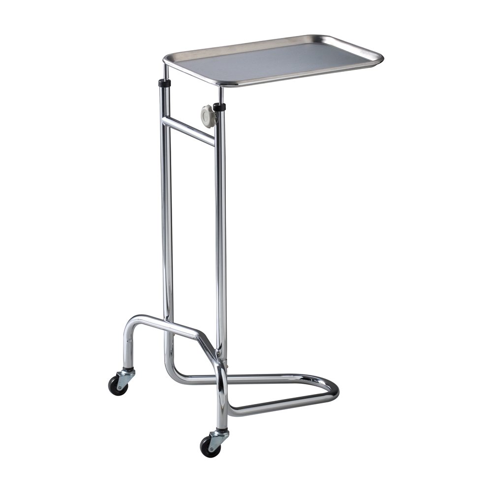 28 to 48 in Height, 12-1/2 × 19 in Tray Size, 20 in, Stainless Steel, Metal Frame Material, Manual, Locking Knob, Single Post, Two 2 in Casters, U-Shaped Base, 12.05 lb Weight, Mayo Instrument Stand Sold per Each