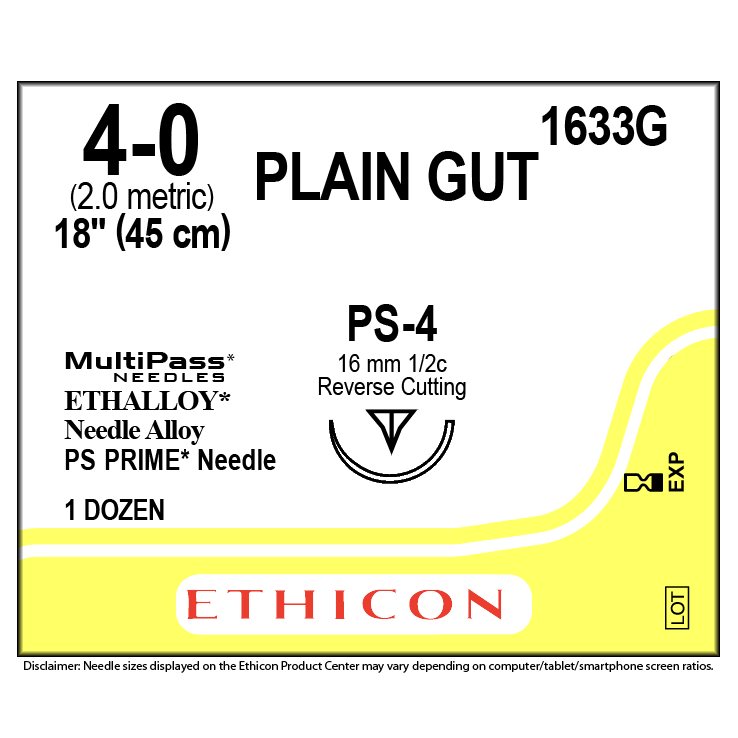 ETHICON Plain Surgical Gut Suture 4-0 PS-4