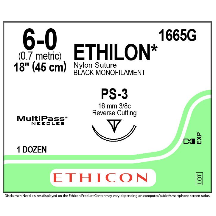 Size 4-0, Length 10 in, Black, Uncoated, Monofilament Nylon, C-17 Needle Code, 3/8 Circle Needle Shape, Reverse Cutting Needle Type, Non-Absorbable Suture Type, 12 mm Needle Length, Stainless Steel Needle Material, LOOK® Non-absorbable Suture with Needle 12 per Box