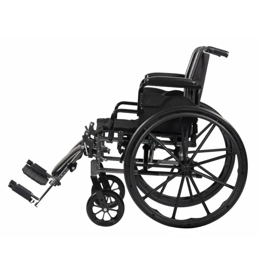 The DynaRide Series 3 Lite Wheelchair will allow you to get around with ease and enjoy a smooth ride every time. The dual-axle provides an easy transition from standard to hemi-level seat position. This lightweight wheelchair is extremely versatile and comes standard with tool-free adjustable elevating leg rests with padded calf pads, and either flip-back or detachable arms with padded armrests.