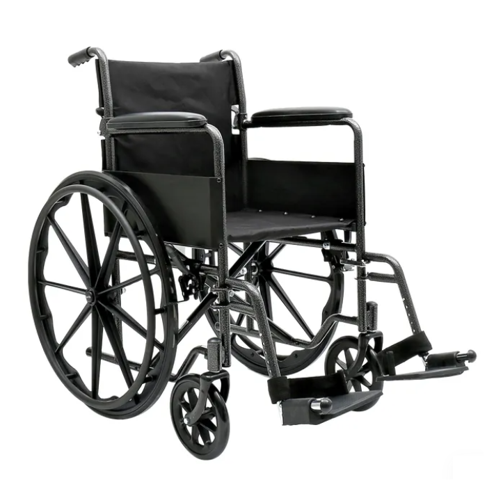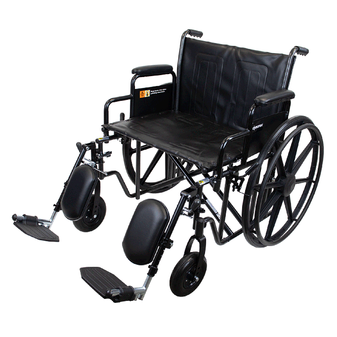 The Dynarex Bari+Max Wheelchair with Elevating Leg Rest provides reliable support and improved mobility for larger users. The heavy-duty steel frame with dual cross brace for extra support allows patients to feel secure and stable. The Wheelchair is equipped with tool-free adjustable elevating leg rests with padded calf pads, and detachable arms with padded arm rests.