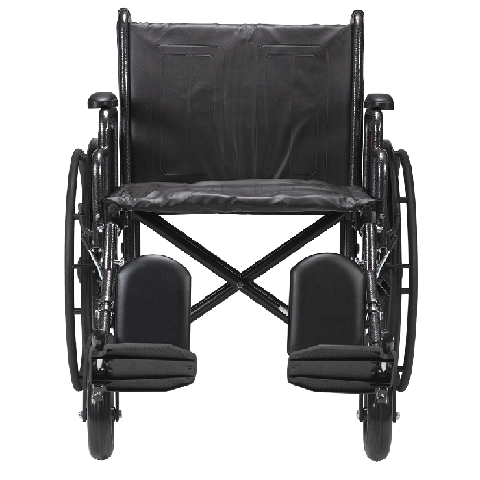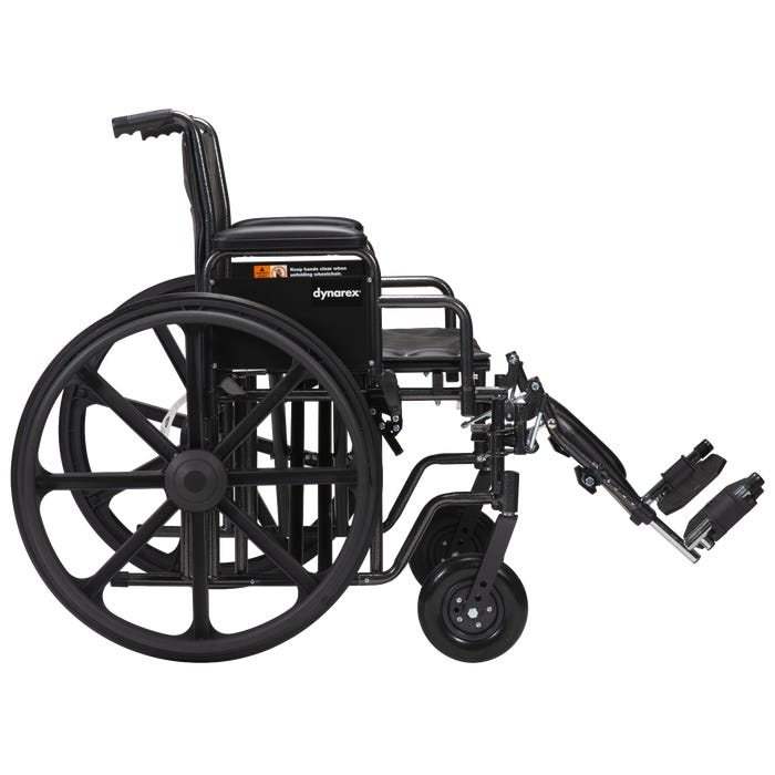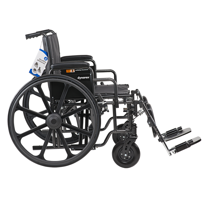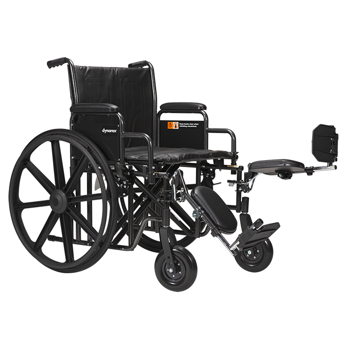The Dynarex Bari+Max Wheelchair with Elevating Leg Rest provides reliable support and improved mobility for larger users. The heavy-duty steel frame with dual cross brace for extra support allows patients to feel secure and stable. The Wheelchair is equipped with tool-free adjustable elevating leg rests with padded calf pads, and detachable arms with padded arm rests. Sold per Each