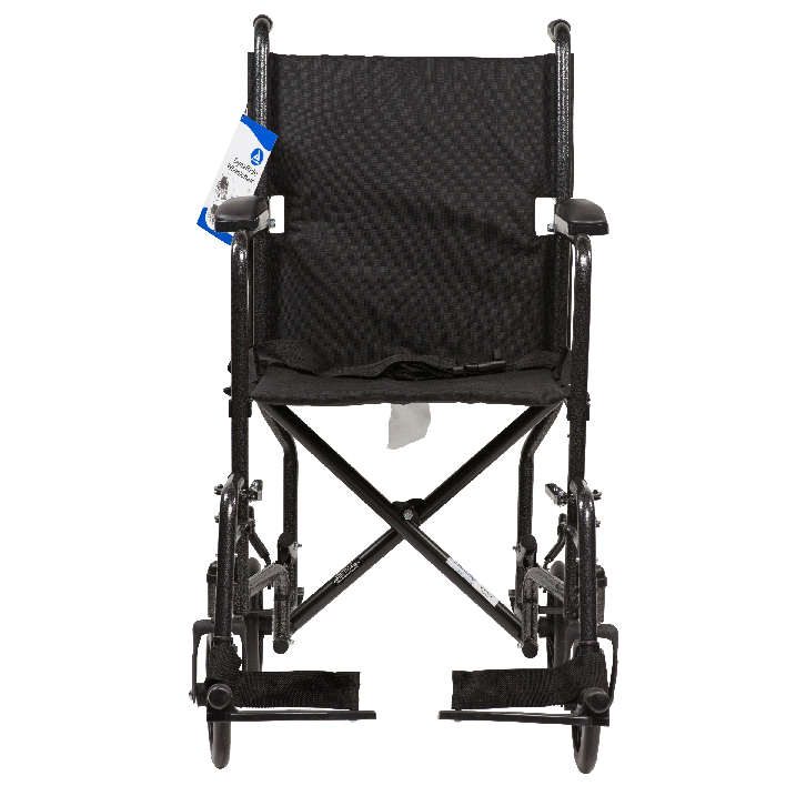 The DynaRide Transport Wheelchair is a compact and dependable chair that will last through wear and tear. The carbon steel construction is inclusive of a foldable back with release hinge allowing it to fold down for easy storage and transport.