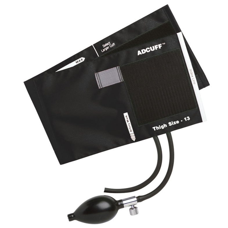 The traditional Adcuff model with one tube can be used with most palm aneroids and many NIBP monitors, and features a two-piece cuff and bladder.