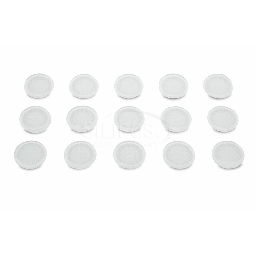 Size One Size, 1/8 in Thickness, 1 in Diameter, Clear, Gel, For Padding Applications, Adhesive Type, Universal Casting Compatibility, Non-sterile, Latex-Free Yes, Silipos® Gel Dots (15 per Pack)