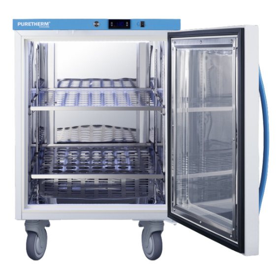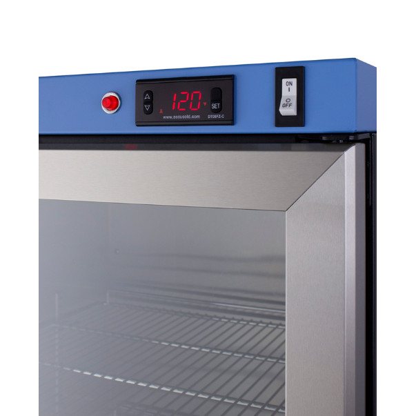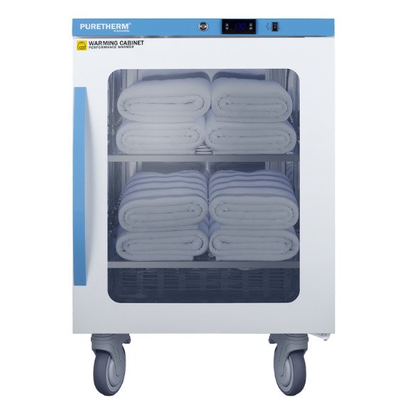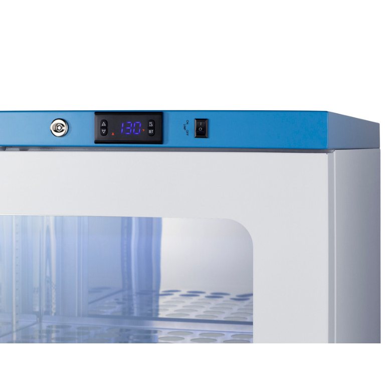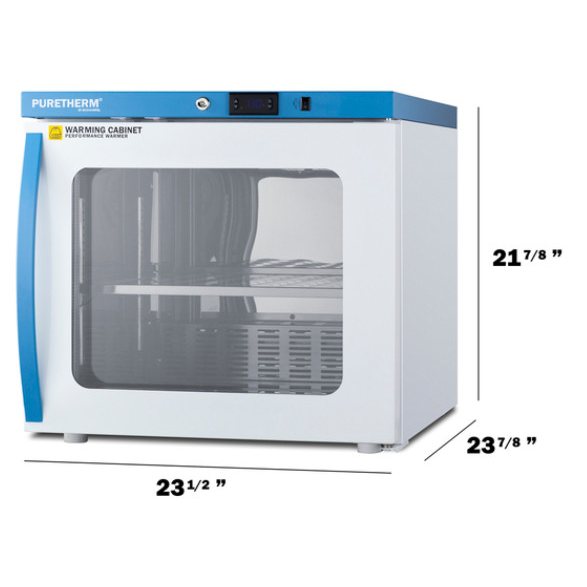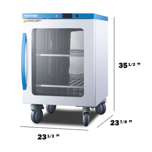Designed to ensure proper warming temperature for hospitals, emergency centers, physical therapy offices, and other patient facilities. The double pane tempered self-closing glass door ensures your staff can quickly check inventory with a display that goes down to the floor. This unit comes in a white cabinet finish with a blue accented control panel.