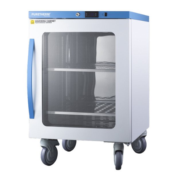 Designed to ensure proper warming temperature for hospitals, emergency centers, physical therapy offices, and other patient facilities. The double pane tempered self-closing glass door ensures your staff can quickly check inventory with a display that goes down to the floor. This unit is mounted on 7” high rubberized casters with two locking breaks, allowing easy mobility.
