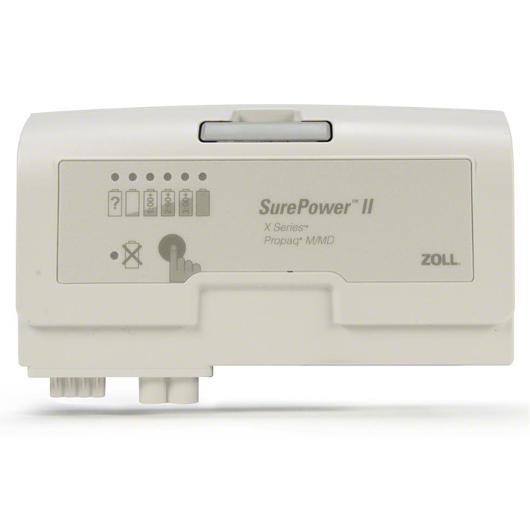 The ZOLL® SurePower II is a rechargeable, smart lithium-ion battery designed specifically for use with ZOLL’s X Series and Propaq M/MD defibrillator/monitor systems. This reliable power source delivers controlled, continuous usage for up to 6 hours, ensuring your advanced life support devices remain ready during critical care situations.