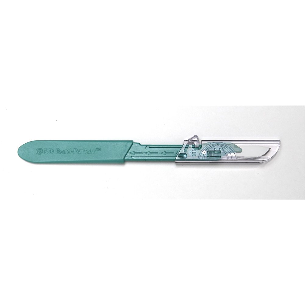 Size 11, Stainless Steel / Plastic, Surgical Grade, Non-slip Grip Handle with Centimeter Scale Handle Specifications, Sterile, Conventional Style, Disposable, Latex-Free Yes, Bard-Parker® Safety Scalpels (10 Boxes per Case)