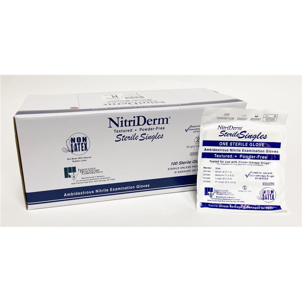 NitriDerm® Nitrile Sterile Exam Gloves Medium (Singles)