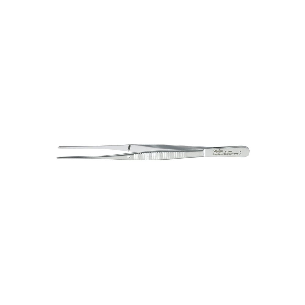 5 in Length, German Stainless Steel, Straight, Delicate Serrated Tip Tip Type, Thumb, Non-Locking, Non-sterile, OR, Miltex® Dressing Forceps Sold per Each