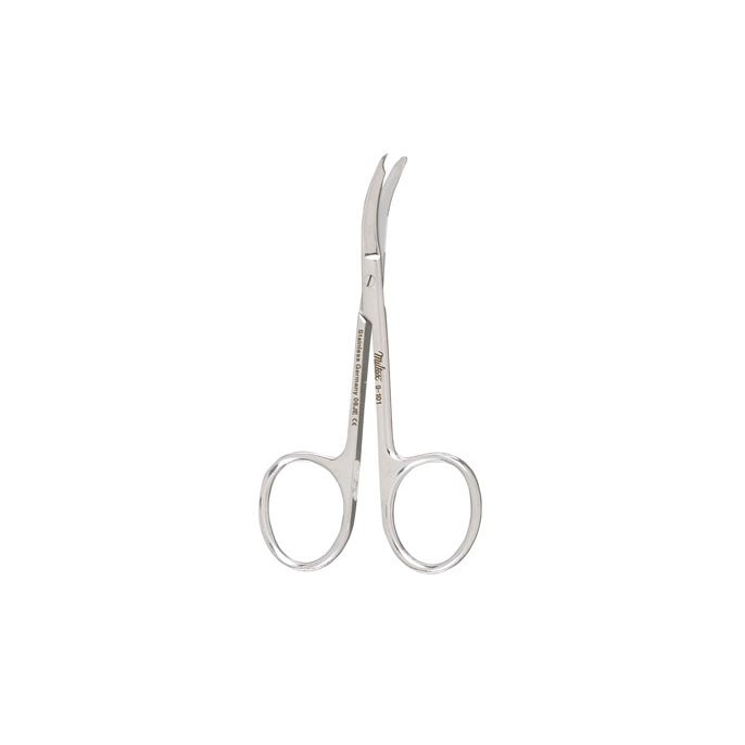 3-1/2 in Length, German Stainless Steel, Blunt Tip/Blunt Tip, Delicate Tip Type, Curved, Finger Ring, Non-sterile, OR, Miltex® Shortbent Stitch Scissors Sold per Each