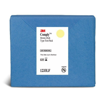 3M™ Comply™ Bowie-Dick Test Pack 1233LF is designed for testing air removal efficiency of 132-134°C (270-273°F) dynamic-air-removal-steam sterilizers. Test packs will reproducibly detect residual air in the sterilizer chamber due to air leaks, air removal failures and inadequate vacuum.