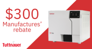 From Feb 1st - March 31st, receive a $300 Manufactures' Rebate when you buy a T-Top 11" Autoclave!