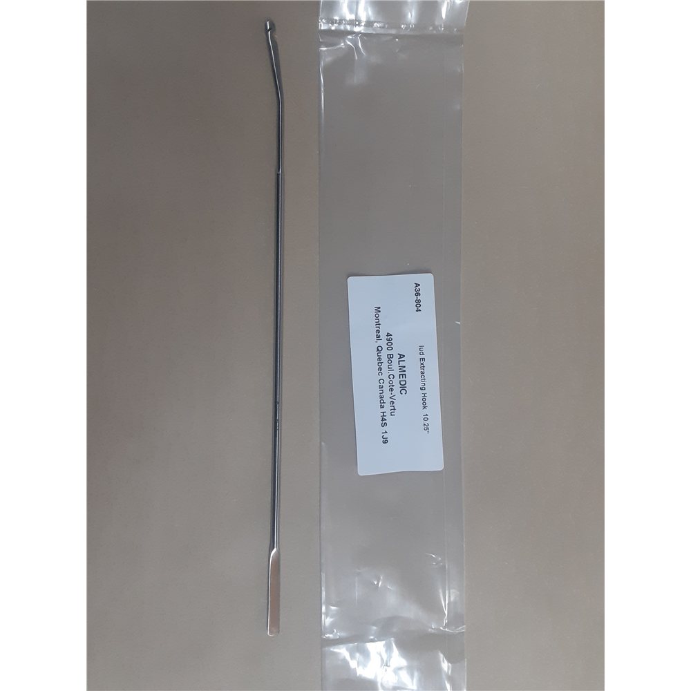 Designed for gynecologic professionals, this IUD removal hook from Almedic® is a reliable and reusable instrument crafted from surgical-grade stainless steel. The slender hook tip engages IUD strings securely while the long handle provides full access and control during removal procedures.