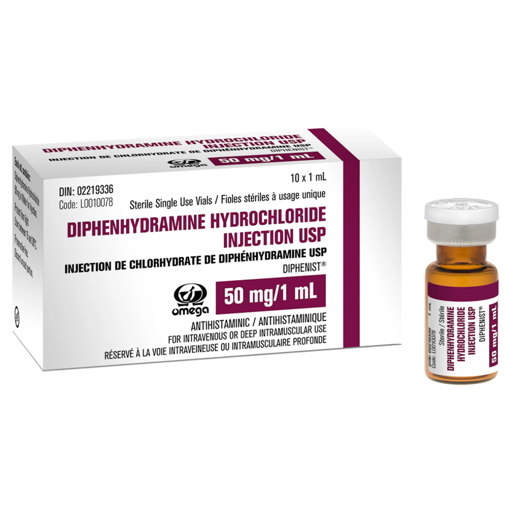 Diphenhydramine Inj 50mg/mL 1mL 10/bx